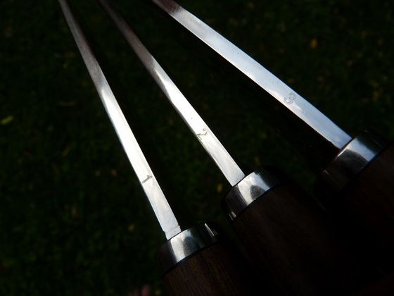 100Cr6 (GO3): Szintén egy alacsonyan ötvözött szerszámacél. Gördülőcsapágyakhoz széleskörűen használják. Viszonylag magas széntartalma van (hipereutektoidos) melynek köszönhetően nagyon jó éltartással rendelkezik. Krómtartalma szintén elhanyagolható a korróziómentesség szempontjából. (a jelenlevő mennyiség az átedzhető átmérő növelését szolgálja, ezáltal olajedzésű). Mint minden alacsonyan ötvözött acélt, ezt is jellemzi hogy finom élt lehet rá húzni és viszonylag jól tűri a lapos élszögeket is.